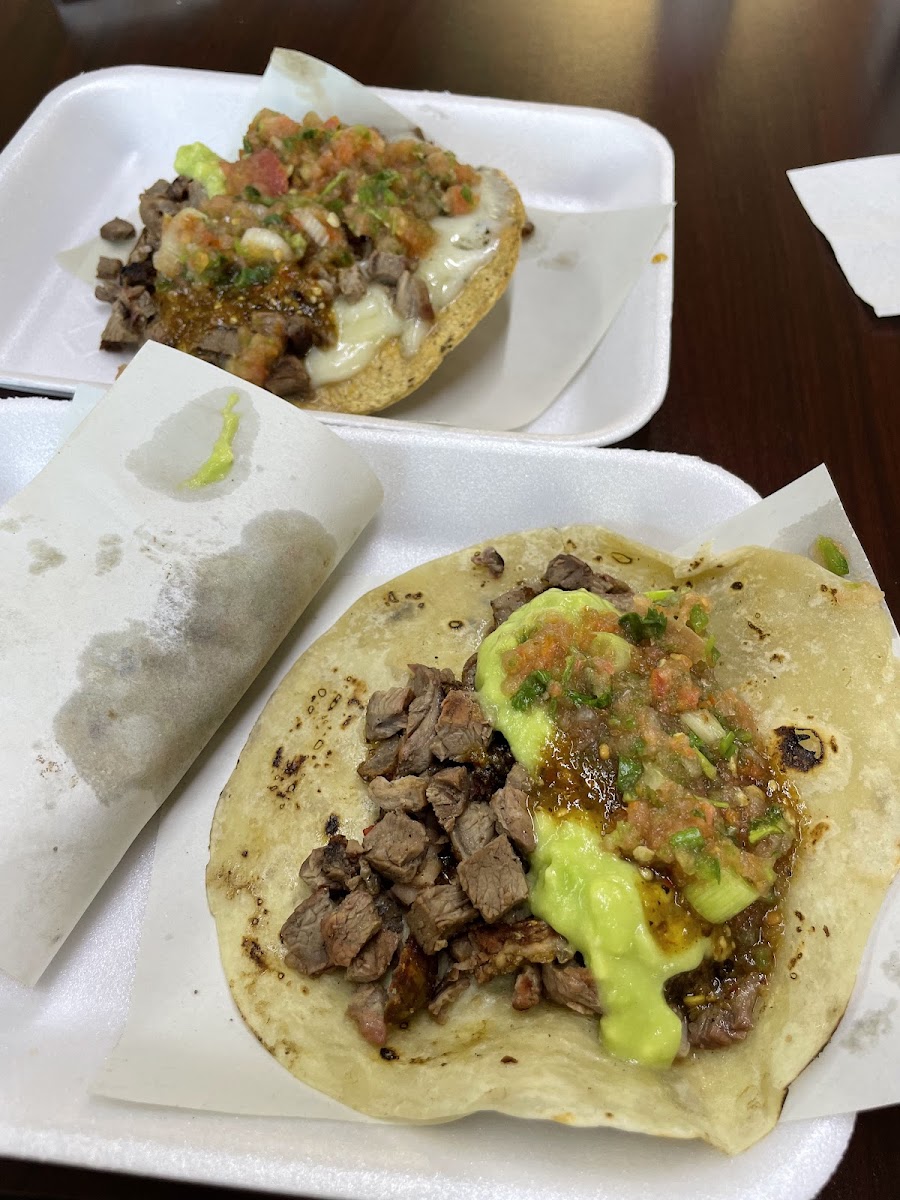 The atmosphere here is energetic and unpretentious, with the kitchen action on full display. The scent of grilled beef—especially their standout carne asada—permeates the small dining area, creating an inviting and mouth-watering environment. It’s the kind of place where you can walk up to the counter, order single tacos or tostadas, and eat standing or grab a seat at simple dining tables for a slightly more relaxed moment.
