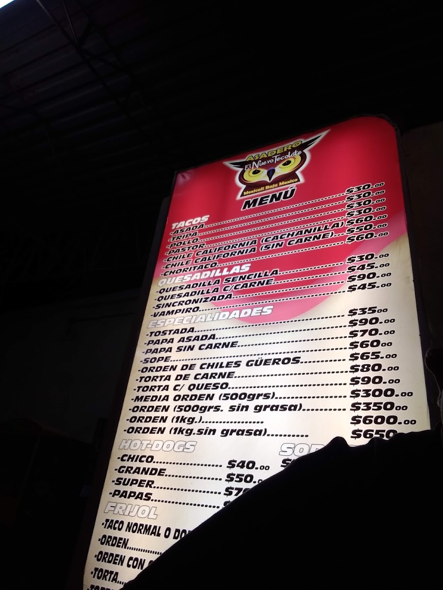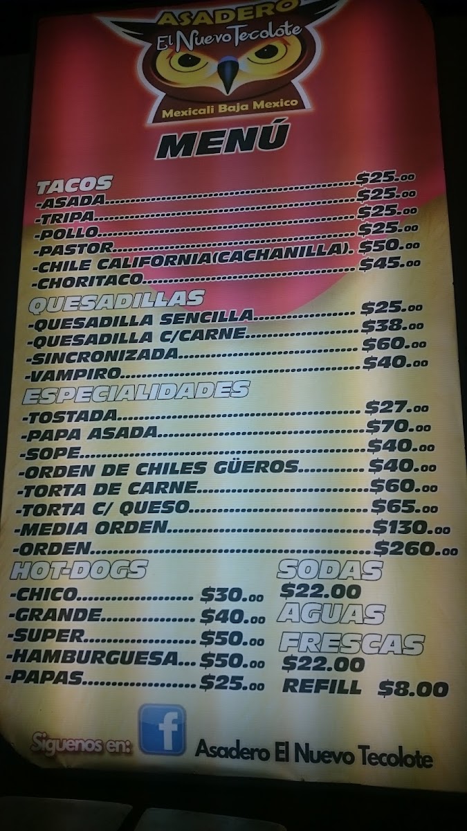 El Nuevo Tecolote Menu